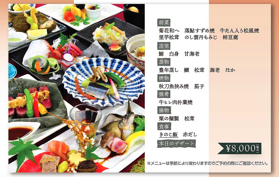 ※ メニューは季節により変わりますので、ご予約の際にご確認ください。